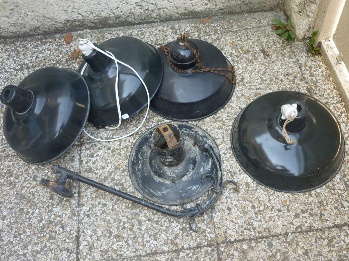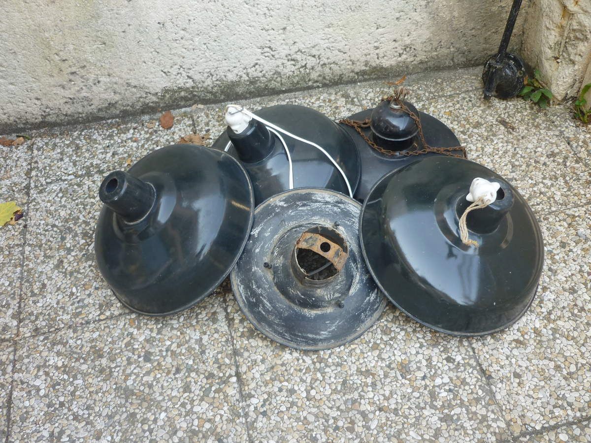 A vendre en un seul lot : 5 suspensions en métal anciennes pour décoration industrielle vendu avec une patère qui allait avec le plus ancien éclairage bel ensemble pour déco de Loft Vintage